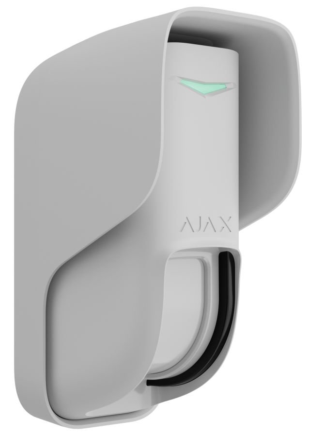 Bezdrôtový duálny detektor pohybu so záclonovou detekčnou charakteristikou; vonkajší; montážna výška 1 - 2.4 m; Uhol záberu detektora: 85°; Stupeň zabezpečenia: Grade 2; IP55; Rozmery: 141 x 76 x 84 mm (bez striešky); 223g (bez striešky); Biela farba