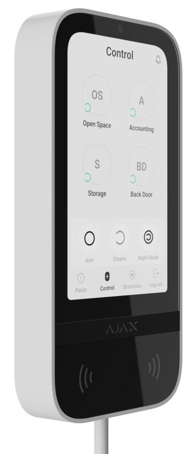Drôtová dotyková klávesnica podporujúca bezkontaktné karty a klúčenky, bluetooth; KLávesnica: 5" IPS displej, rozlíšenie 480x854 px; Drôtový prenos signálu; Podpora: Karty, klúčenky DEsFire 128bit, Bluetooth; Frekvencia: 868 MHz; Počet užívateľov: Až 200 v závislosti od verzie Hubu, do 99 kódov pre hostí; Podporované zariadenia: Hub Hybrid (2G), Hub Hybrid (4G); Napájanie: 7−30 V⎓, up to 54.6 mA; Rozmery: 171.5x82x28 mm; 288 g; Biela farba