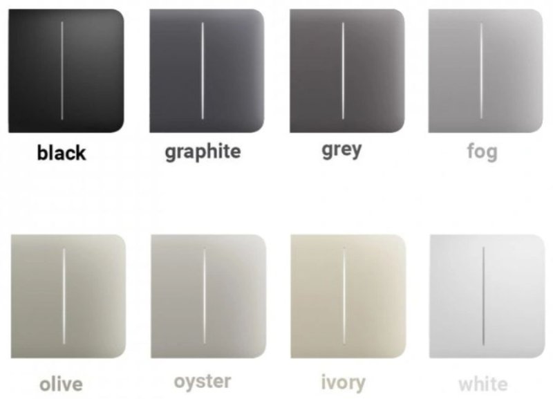 Bočné tlačidlo pre LightSwitch (spínač radenia 5). LightSwitch Jeweller - Inteligentný dotykový nástenný vypínač určený pre vnútornú inštaláciu. LightSwitch v tomto prípade ako kombinovaný vypínač sa skladá z 2, 3, 4 alebo 5 relé, dotykových tlačidiel (v ôsmich rôznych farebných prevedeniach) a rámčeka so zodpovedajúcim počtom otvorov. Rozmery 82x76.19x10.26 mm;
