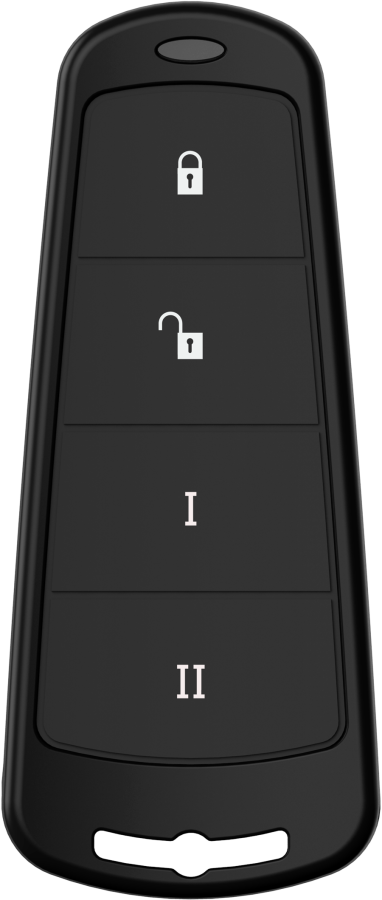Keyfob; Napájanie batériou; AES-128 šifrovanie; Frekvencia: 868MHz; Vzdialenosť: 500m (Otvorená plocha); Obojsmerný bezdrôtový; Spätná väzba po zapnutí panelu.