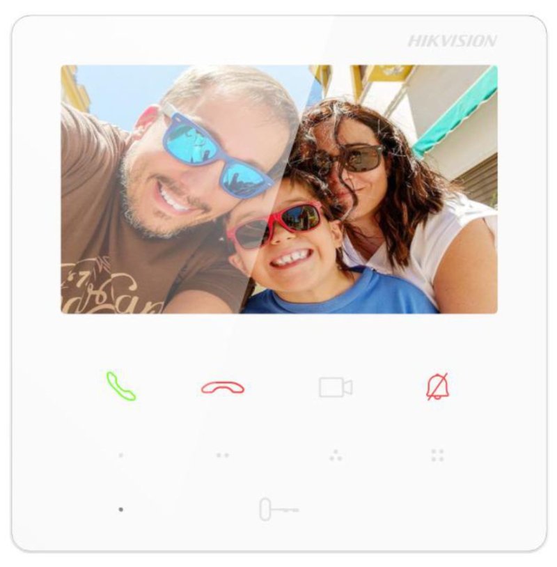 Vnútorná jednotka 4.3"; 4.3" TFT farebný dotykový dislpej (480 x 272); 200 udalostí, 200 poznámok; Náhľad videa až 16; pripojených kamier a vnútorných jednotiek; Všesmerový mikrofón; Zabudovaný reproduktor; Wi-Fi 802.11 b/g/n, 2.4 GHz; 1x RJ45, PoE; 4x alarm vstup; Interná pamäť 128MB; Flash 16MB; Rozmery 120 x 120 x 21mm; Napájanie 12V, PoE; Ovládateľné cez Hik-Connect