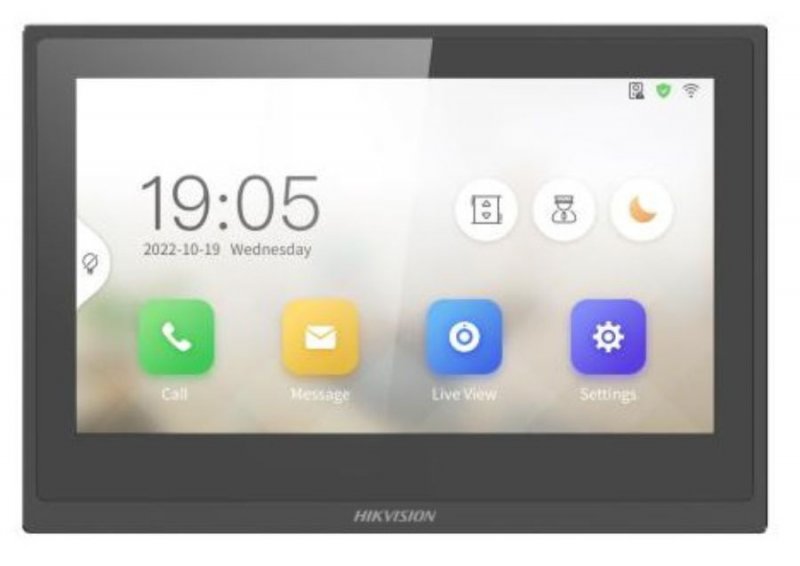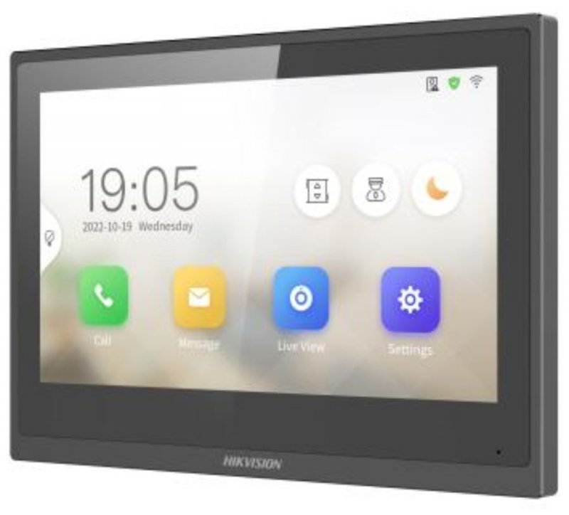 Dotykový video interkom s kovovým panelom, WiFi a PoE; Dispej: 7" farebný TFT LCD displej, rozlíšenie 1024x600, kovový rám; Audio: všesmerový mikrofón, reproduktor, audio kompresia G.711U, 64Kbps, obmedzenie šumu a ozveny; Parametre: Podpora monitorovania IP kamier Hikvision - max. 16; Podpora ovládania výťahu; Priama komunikácia medzi dvoma alebo viacerými monitormi - max. 5;