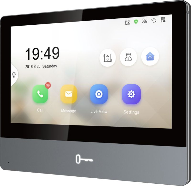 Vnútorná WiFi jednotka; 7" dotykový IPS displej; vysoký jas a kontrast; rýchla odozva; sýte farby; široký uhol pozorovania; dlhá životnosť; rozíšenie 1024x600; zabudovaný mikrofón a reproduktor; 1x RJ45 10/100 Mbps; 8 poplachových vstupov; 1x RS485; TF karta do 32GB, SD2.0 alebo nižšie; PoE, 12VDC/1A; spotreba do 7W; materiál : hliník; rozmery: 80 mm × 140 mm × 22.4 mm