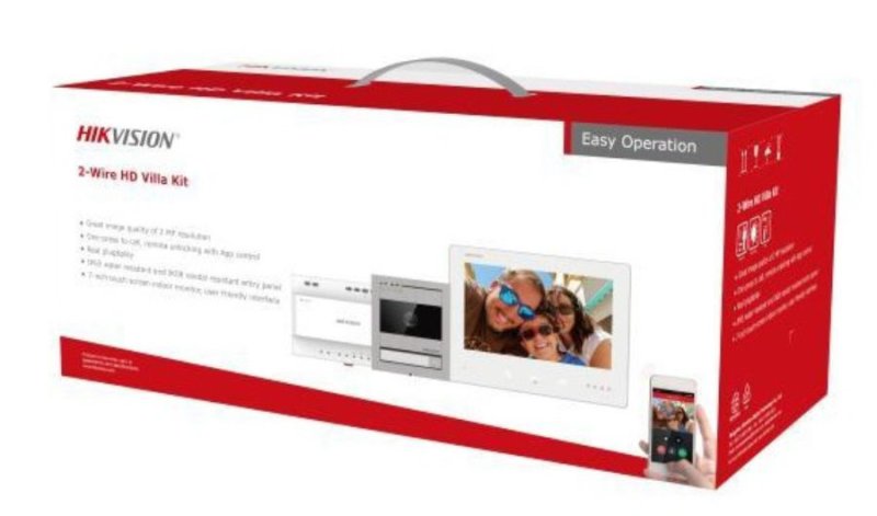 Sada DS-KIS704EY obsahuje: dvojvodičový dverný modul DS-KD7003EY-IME2 (povrchová montáž) + nerezový rám DS-ACW1/S, dvojvodičová vnútorná jednotka DS-KH7300EY-WTE2, distributér DS-KAD7040EY (s adaptérom), 32GB pamäťová karta.