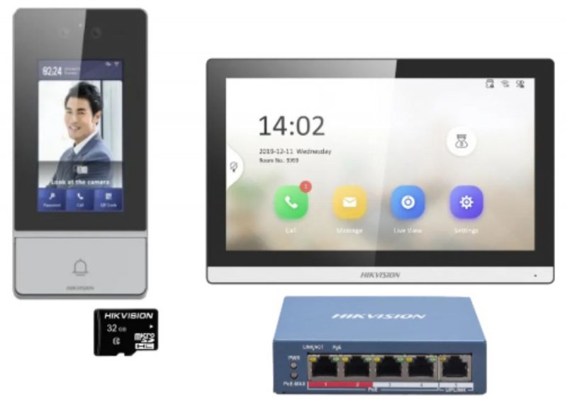 Sada DS-KIS902-S obsahuje: Vnútornú jednotku: DS-KH6350-WTE1/Europe BV (biely rám), Vonkajšiu jednotku s tvárovým terminálom: DS-KV9503-WBE1, 5 portový PoE Switch, TF karta 32GB. Pohodlné mobilné ovládanie Hik-Connect APP; Viacero spôsobov overovania: Tvár, PIN kód, karta, QR kód, Bluetooth; Štandardné napájanie PoE; Ukladanie správ a zachytených obrázkov na kartu TF