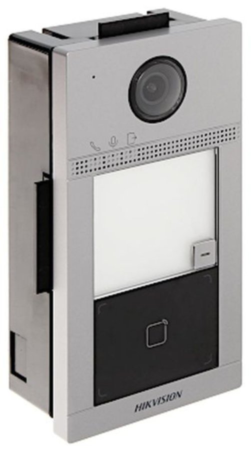 Zápustná dverná jednotka Villa, 2MP HD, WiFi; 1 tlačidlo; vstavaná čítačka MiFare kariet ; zabudovaný mikrofón a reproduktor; rozlíšenie kamery (1920x1080), 25 sn/s; uhol záberu 129°; video kompresia H265; audio kompresia G.711 U; 10/100M adaptívny ethernet; RS485, 4 alarmové vstupy; 2x Relé; kovové vyhotovenie; IP65; IK08; napájanie PoE, 12VDC; spotreba do 12W; IR prisvietenie; rozmery: 164 × 97 × 54.4 mm; kompatibilná s Hik-Connect.