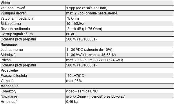 VD4 je distribučný videozosilňovač. Plynule regulovateľné zosilnenie videosignálu umožňuje nastaviť požadovanú výstupnú úroveň/amplitúdu každého videokanálu na optimálnu hodnotu; Priemyslové prevedenie; Univerzálne napájanie; Prepäťová ochrana (jemná); 1 až 16 nezávislých výstupov; Plynule nastaviteľné zosilnenie; Prevádzková teplota – 40°C do +70°C;
