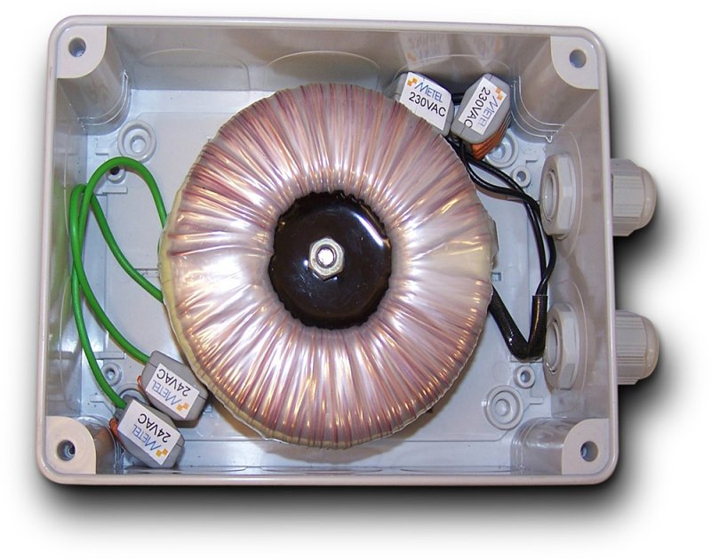 toroid 230V/24V-100VA v kryte IP55, zaliaty stred, vonkajšie prevedenie, ochrana tr.D, inštalácia na rovný podklad, 230VAC, možné použiť ako univerzálny napájací zdroj pre kamerové systémy