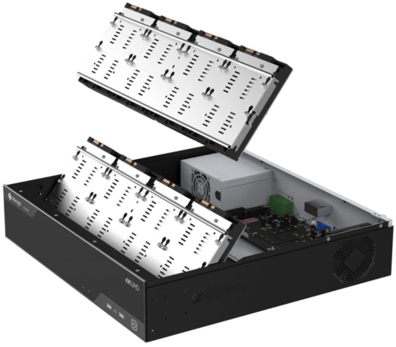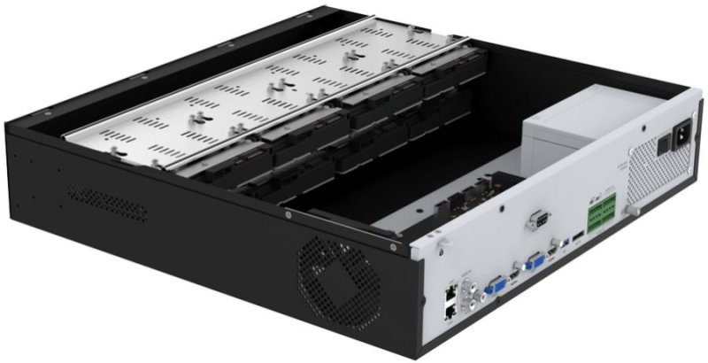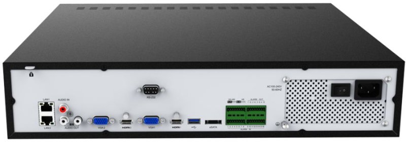 4K Pro NVR pre 64 IP kamier; vstupný dátový tok 320Mbps/RAID / výstupný 256Mbps/RAID; podpora kamier až do rozlíšenia 12MP; H.265+/H.265/H.264+/H.264/G.711; 2x LAN; synchronizované prehrávanie; videoanalýza obrazu; podpora LPR kamier pre rozpoznávanie ŠPZ vozidiel; 8× SATA HDD do 10 TB (3.5"), 1× eSATA; podpora RAID; 2× RJ45 (10/100/1000Mbps); 1× USB3.0, 2× USB2.0; audio 1/2;