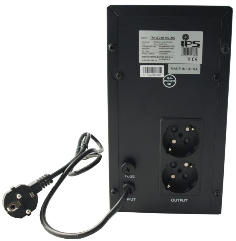 UPS tower modifikovaná sinusoida 230Vac 2000VA/ 1200W kovové puzdro s batériou 2x 12V/9Ah; Riadenie založené na digitálnom mikroprocesore; AVR - automatický systém regulácie napätia; Prispôsobuje sa frekvencii; Autodiagnostika pri spustení; „Zimný štart“ - uvedenie do prevádzky bez sieťového napätia; Automatický reštart pri obnove napätia; Inteligentná správa batérií; Ochrana proti skratu a vybitiu; Automatické nabíjanie batérie v sieťovom režime; Voliteľný port USB / RS232 a telekomunikačný filter; Použitie: Nízkoenergetické telekomunikačné systémy, stolové počítače, systémy CCTV, KD, SSWiN, zariadenia vybavené spínacím zdrojom.