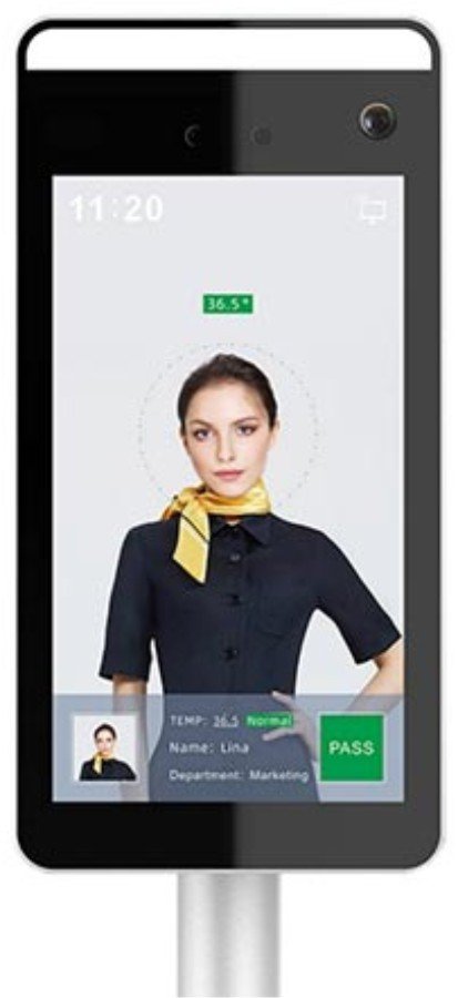 Vstupný terminál pre rozpoznanie tváre, 7" LCD displej, 1/2.8'' CMOS SONY IMX307 2MP senzor, teplotný rozsah 36°C ~ 40℃, presnosť ±0.3℃, meracia vzdialenosť 0.5-1m, čas merania 1s, kapacita 30 000 tvárí, identifikácia tváre za 200ms, podporuje hlasový alarm, napájanie DC12V, prevádzková teplota -10°C ~ +40°C, rozmery 219x111x21.5mm, 2.3kg