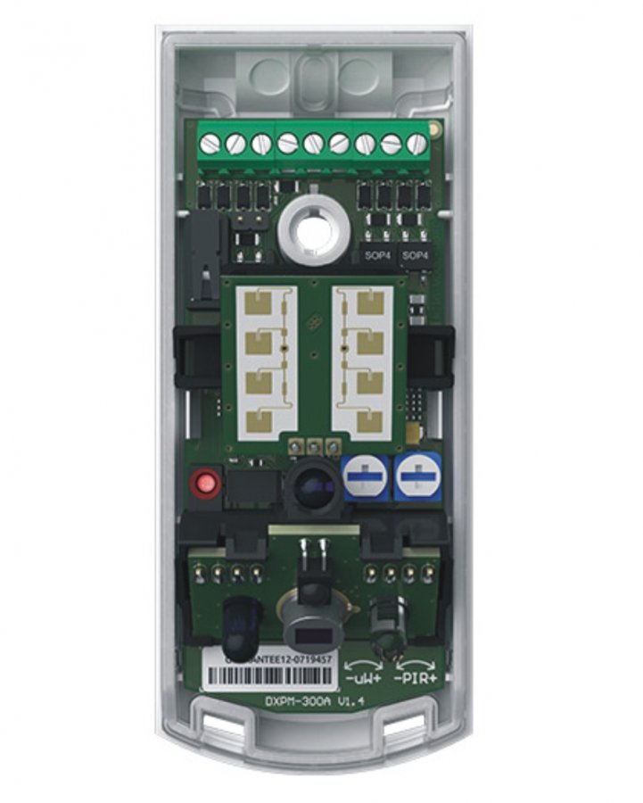 Vonkajší záclonový PIR + MW detektor; digitálny algoritmus detekcie pohybu; regulovateľné nastavenie citlivosti oboch detektorov; antimasking pre stupeň zabezpečenia Grade 3 podľa EN 50131, stupeň zabezpečenia Grade 3 podľa EN 50131 (montáž na stenu); autodiagnostika; trojfarebná signalizačná LED; dvojitá sabotážna ochrana pred otvorením a odtrhnutím od steny; IP 54;