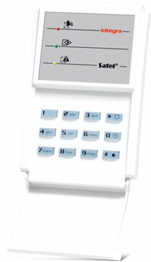 Klávesnica pre skupiny systému INTEGRA, modré podsvietenie, ovládanie jednej skupiny v systéme, LED diódy indikujú stav skupiny, funkcia kontroly vstupu, relé na ovládanie el. zámku, vstup na kontrolu stavu dverí, rýchle zapnutie režimu stráženia, klávesy pre napadnutie-požiar-pomoc, stupeň zabezpečenia Grade 2 podľa EN50131, max. odber prúdu 75 mA, rozmery 80 x 127 x 24 mm