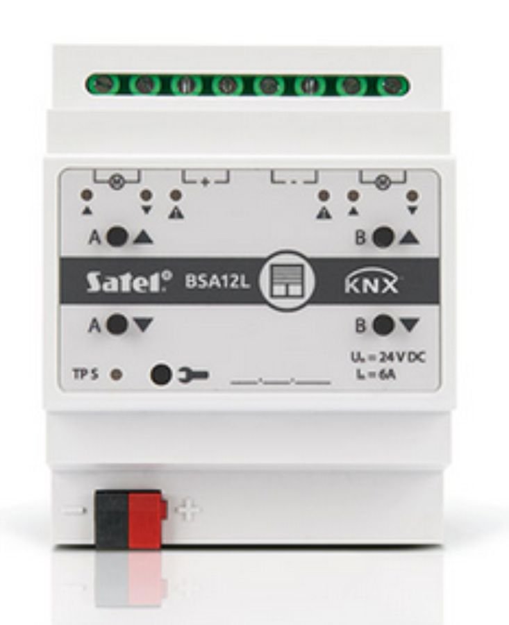 Modul roliet KNX umožňujúci ovládanie pohybu žalúzií, roliet a markíz. Umožňuje taktiež ovládanie pohybu elektricky ovládaných okien. Modul KNX-BSA12H je určený na ovládanie zariadení s motorom 24 V DC. 2 fyzické výstupy, ktorým zodpovedajú 2 logické kanály. Každý kanál umožňuje ovládanie jedného vybraného typu žalúzie alebo okna, komunikácia so zbernicou KNX